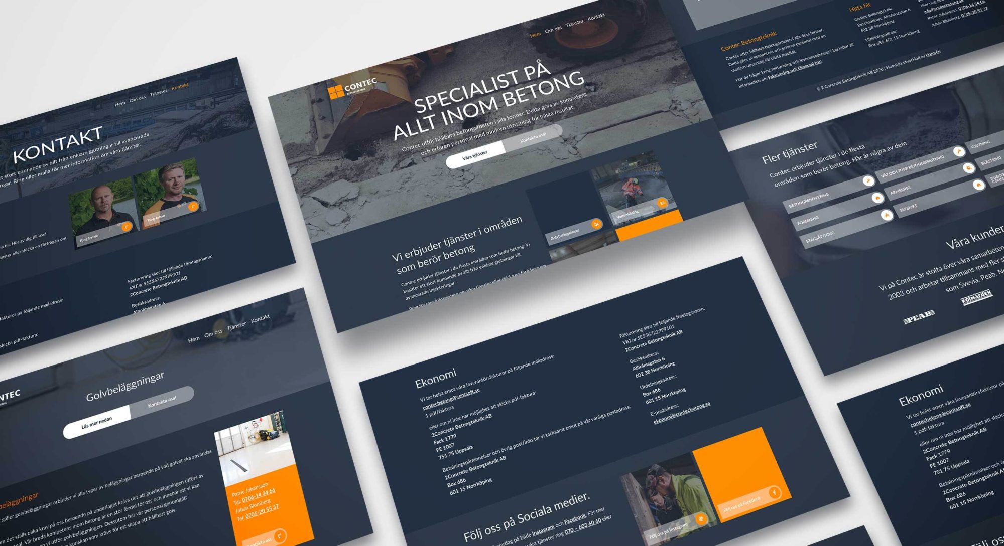 Fokus i projektet med Contec Betongtekniks nya hemsidan har varit att framhäva vad de erbjuder och vilka de är. Contec är ett företag som växt och utför stora jobb runt om i landet. De önskade själva att deras tjänster skulle få ta större plats och vara mer lättillgängliga. Den nya designen har dels inspirerats av logotypens färg och form kombinerat med inspiration av deras specialområde betong.