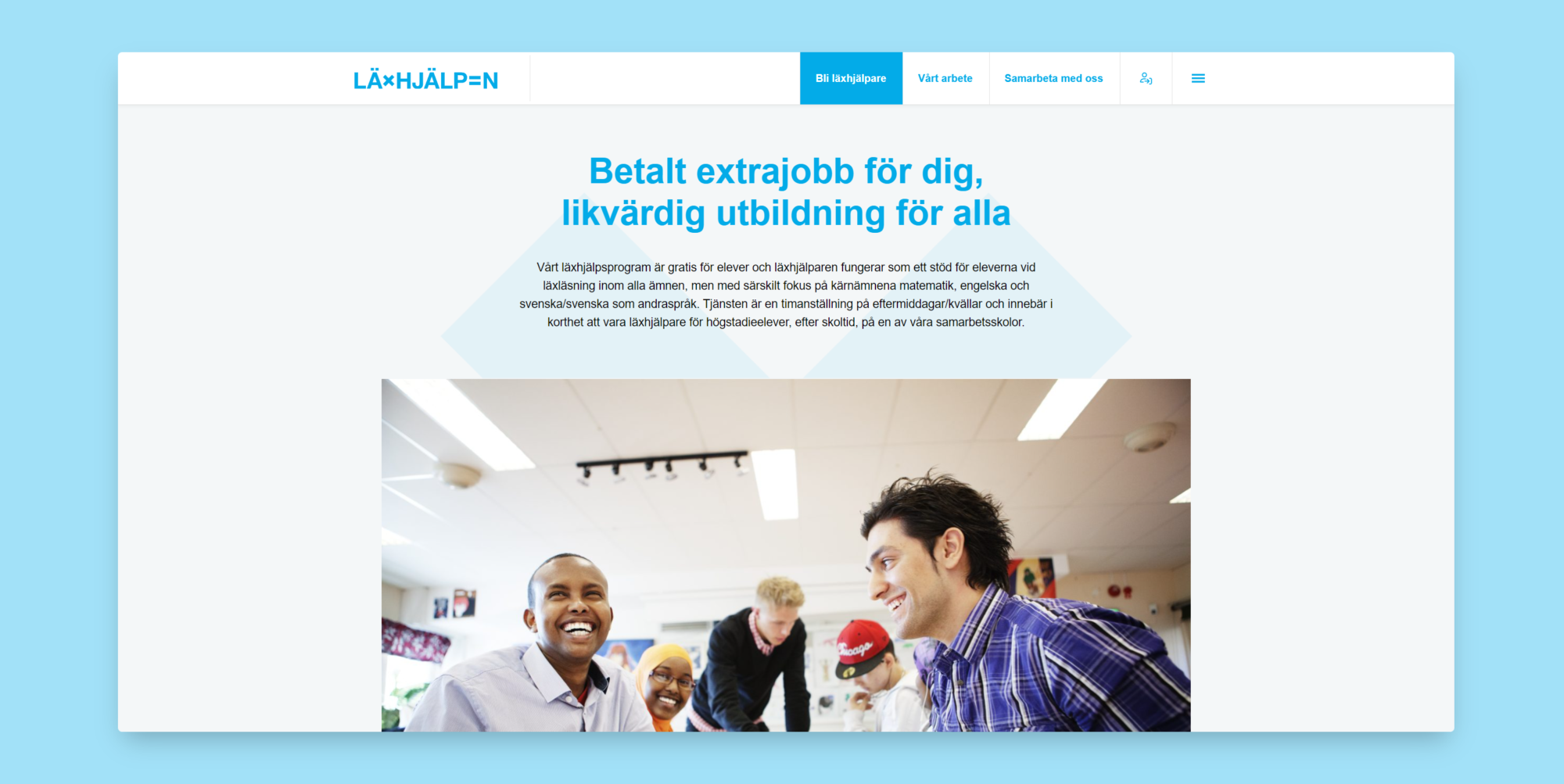 Läxhjälpen önskade en mer användarvänlig hemsida med ett modernare utseende och fokus på läsbarhet. Deras föregående hemsida hade uppfattats som svårnavigerad där viktig information var jobbig att hitta. Vi tog fram en hemsida med stilren design, som är tydlig för användaren och som leder till ökad konvertering.