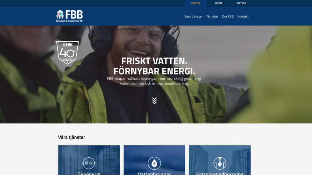 Familjeföretaget FBB Finspångs Brunnsborrning AB grundades 1979 och är idag ett av Sveriges största privatägda brunnsborrningsföretag inom segmenten geoenergi, vattenbrunnar och entreprenadborrning.