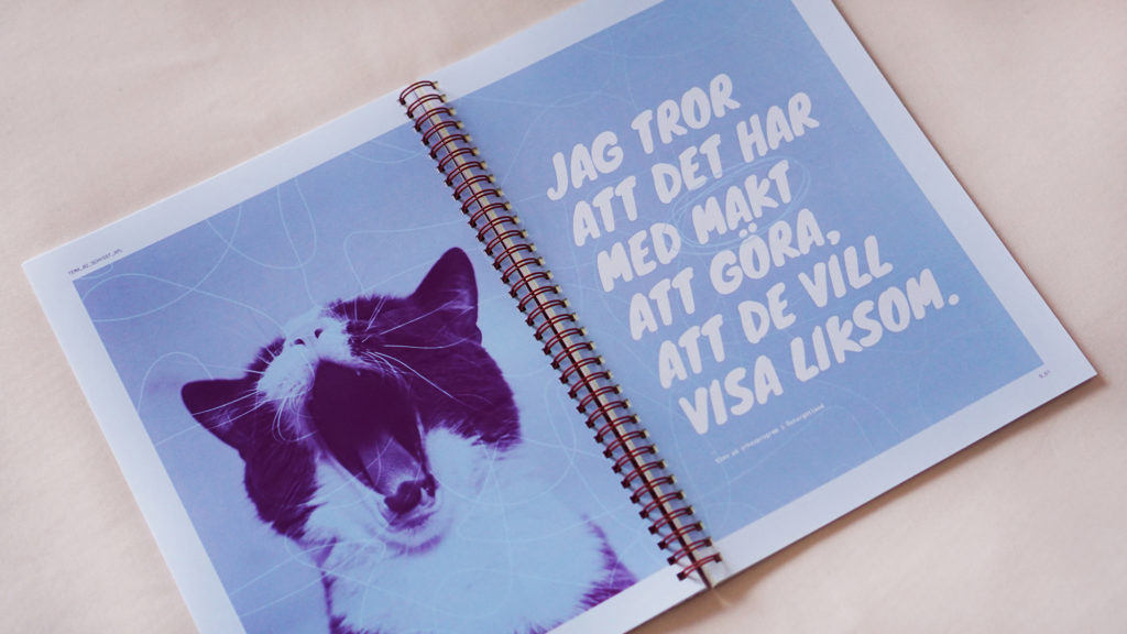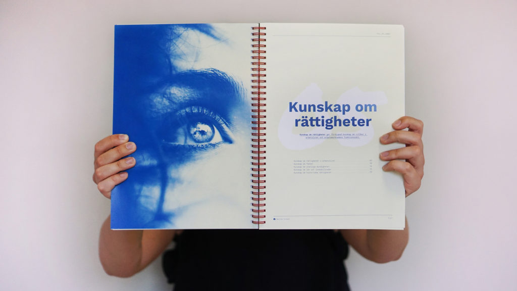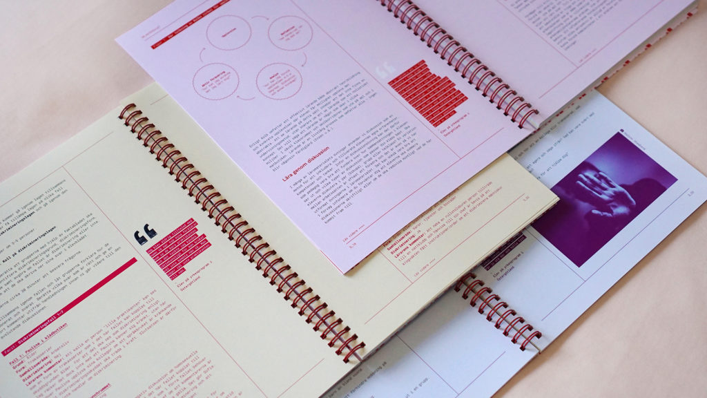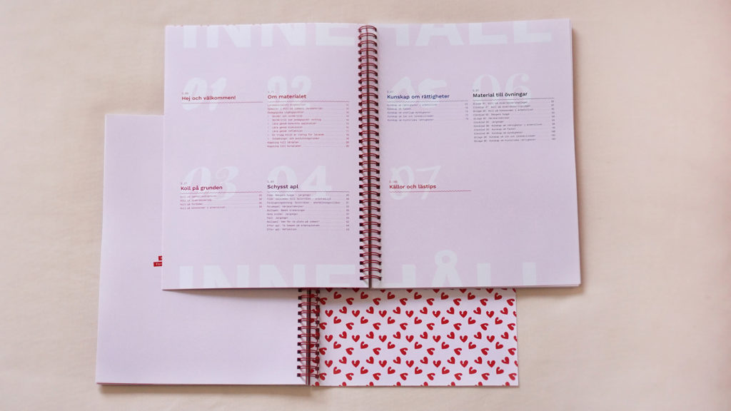 En viktig del i arbetet med materialet var att engagera och inspirera både lärare och elever. Texten och informationen i boken är allvarlig och tung, vilket behövde vägas upp med en lekfull och inspirerande layout för att skapa intresse och engagemang.
