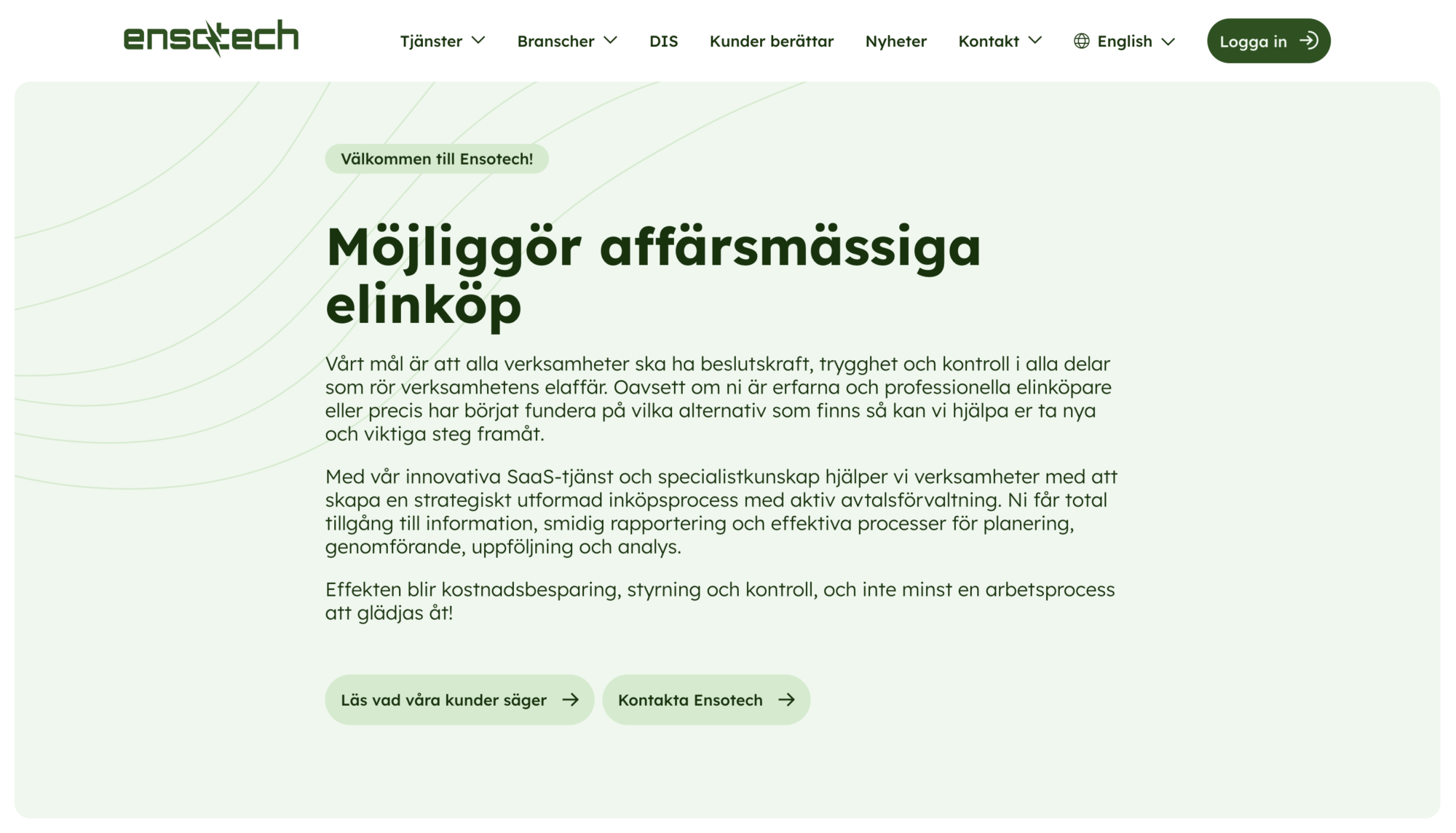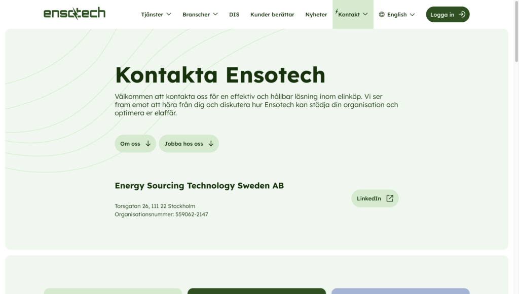 Ensotech har 30 års erfarenhet av att se till att verksamheter får kontroll över elinköp med hjälp av Ensotechs innovativa digitala lösningar och expertis. Ensotech är ett konsult- och techbolag med en unik B2B-lösning för industrier och offentliga verksamheter. Ensotech har växt fram ur samarbete med kunder och fortsätter utvecklas i samarbete med sina kunder. På så vis är Ensotech en kundnära organisation som vet att lösningarna och tjänsterna de utvecklar ger maximalt kundvärde – vilket de brinner för att skapa!