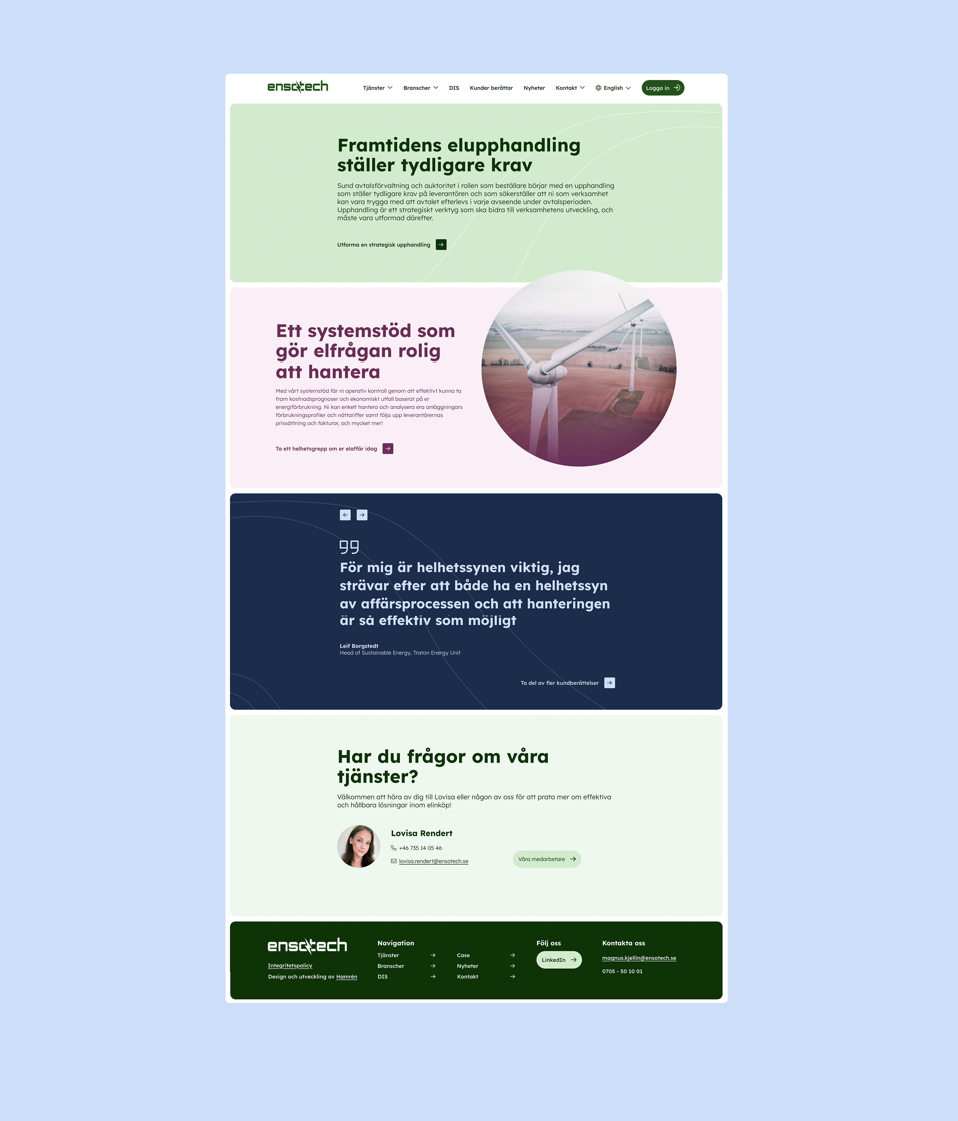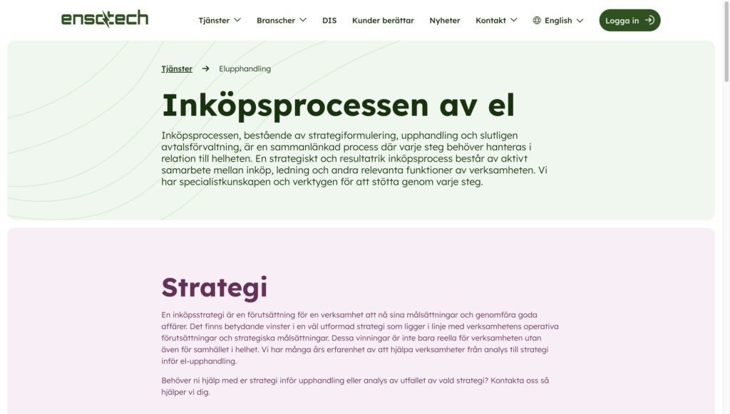 För Hamrén handlade det om mer än bara ett visuellt omtag på deras befintliga hemsida av bilder och texter. Ensotech kände inte igen sig i förra webben och upplevde att kunderna inte heller kände igen hur erbjudandet presenterades. Syfte och underlag för den nya hemsidan har tagits fram i samarbete med Ensotechs kunder. Under projektets gång har vi guidat och peppat kunden att hitta riktning, utveckla och bygga ett starkare varumärke. Vi har varit ett stöd under Ensotechs intervjuer med kunderna och säkerställt att ensotech.se är sökordsoptimerad. Målet har varit att ta fram en hemsida med en logisk webbstruktur och som lätt för målgruppen att hitta.