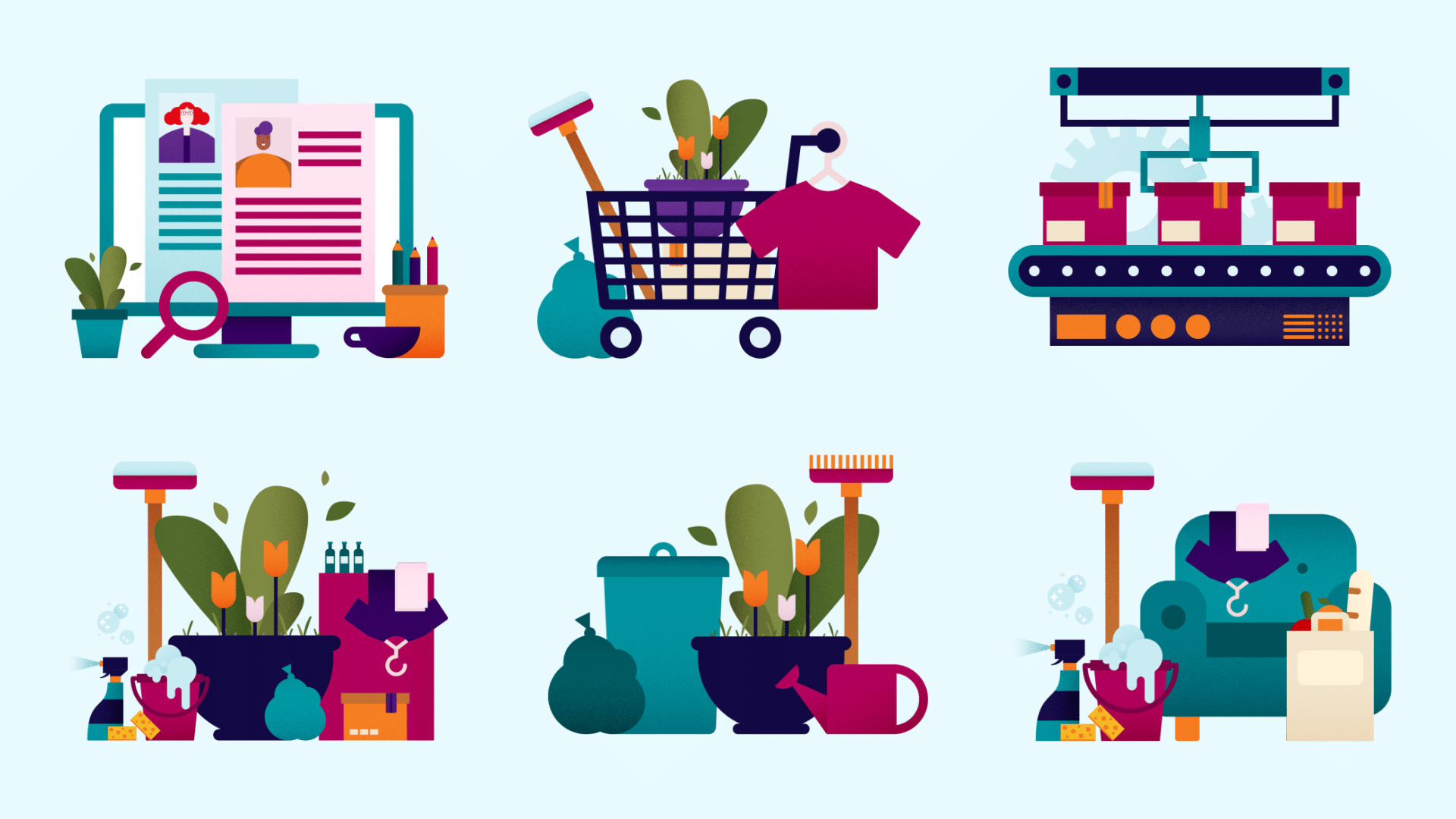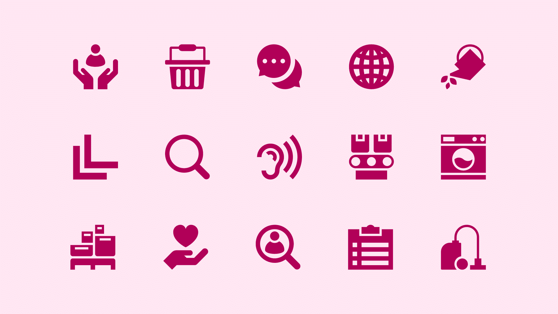 För att ytterligare stärka Samhalls identitet kompletterades hemsidan med en hel uppsättning nya ikoner och illustrationer. Illustrationerna har samma mål som hela den nya webbdesignen: att spegla Samhalls mångsidiga erbjudande och arbete på ett kreativt och inbjudande sätt.