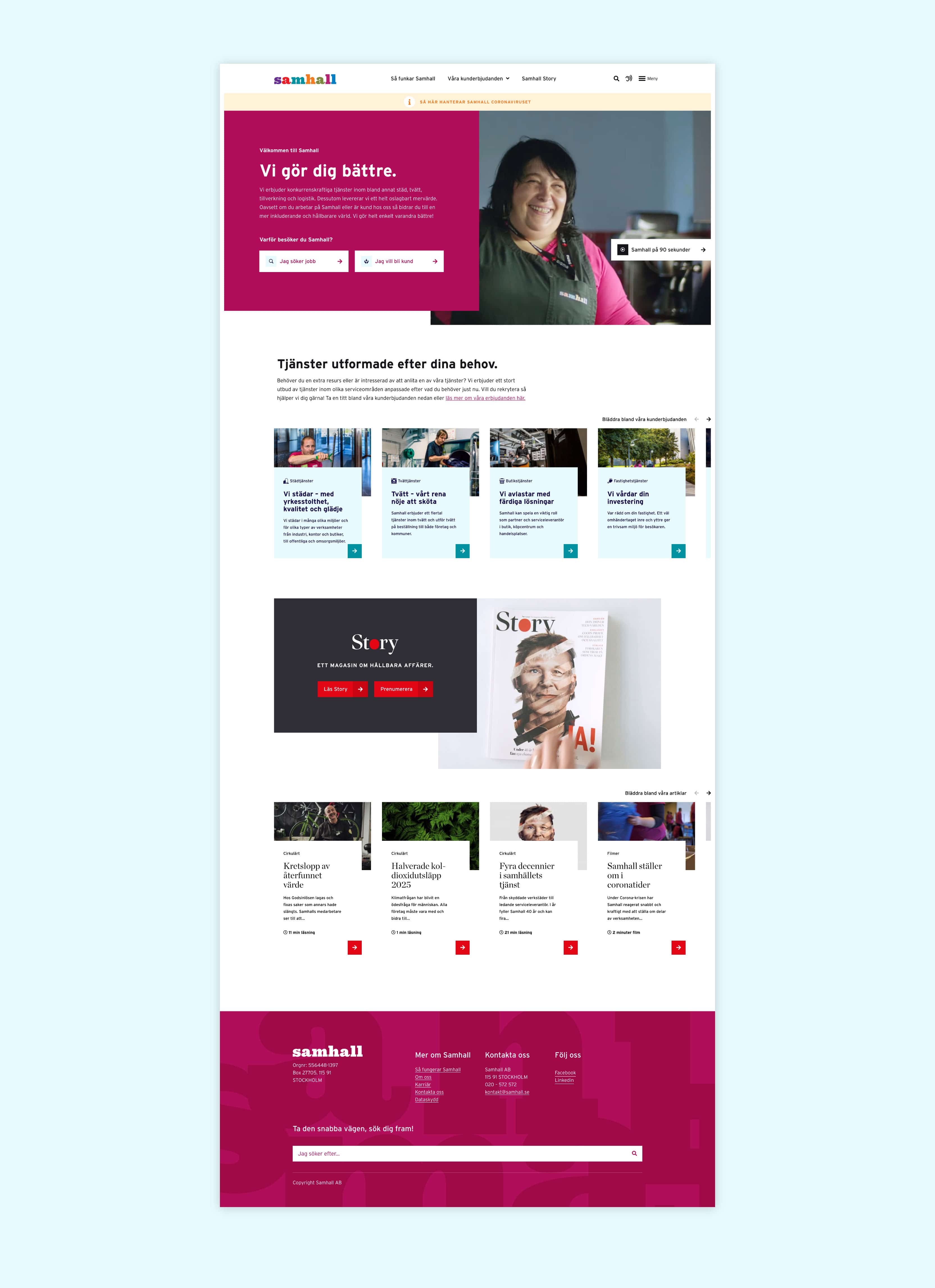 Samhall tänker hållbart ända in i kärnan av sin verksamhet. I magasinet Story delar de med sig av intervjuer, reportage och succéberättelser på temat. På nya Samhall har magasinet fått ett designlyft, större fokus på startsidan och en plats i rampljuset på flera av undersidorna. Och med indikeringen för lästid är det enkelt att förstå hur lång artikel det rör sig om. Perfekt ihop med ”lyssna”-funktionen!